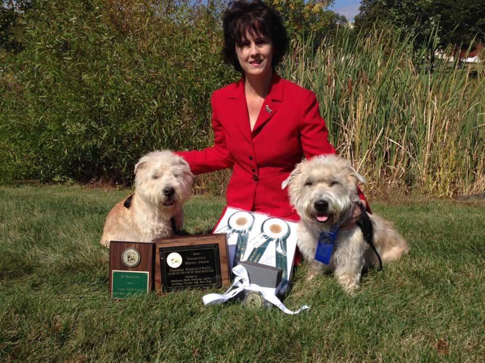 I am so proud of my two Glen of Imaal Terriers! We traveled from FL to PA for our National Specialty Show this past week. Griffin showed against other Glens for the first time and he earned 3 1st places and one 2nd place. Griffin also won the puppy sweeps for his age group, earning a cash prize and a crystal bowl.