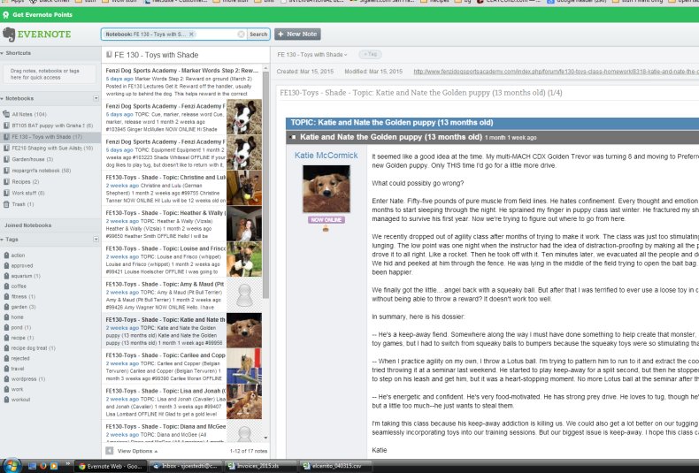 Here's what my evernote app looks like on the computer with some of my saved gold threads.
